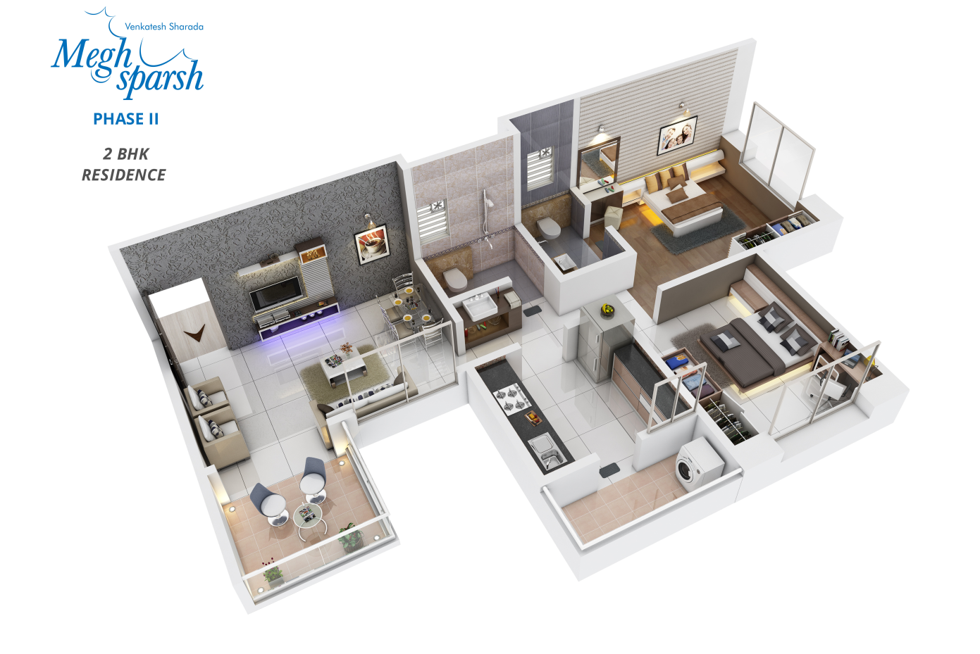 The homes at “Meghsparsh” are designed for ample natural light, being ‘both side open‘ the apartments provides for perfect ventilation and the layout of each apartment has an easy flow for day to day movement.